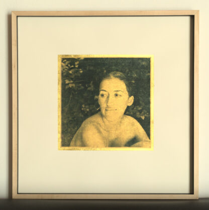- Cianotípia sobre paper Oizu de 20 g/m2, muntada sobre paper Arches de gra satinat de 300 g/m2 daurat amb or de 22 quirats. Viratge amb pinyol d’alvocat.